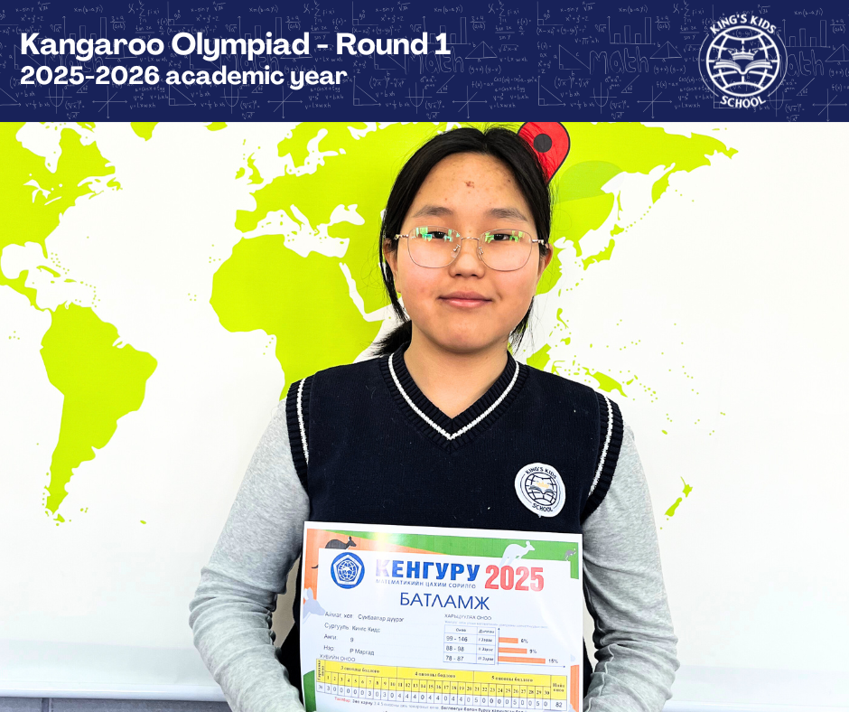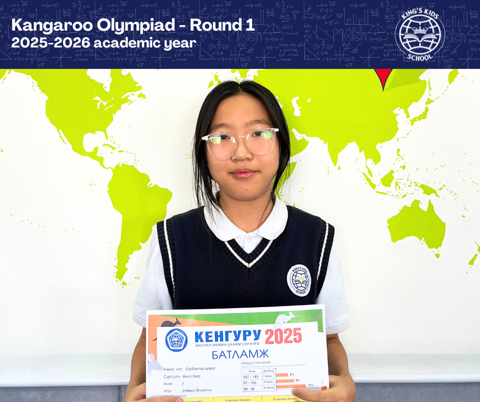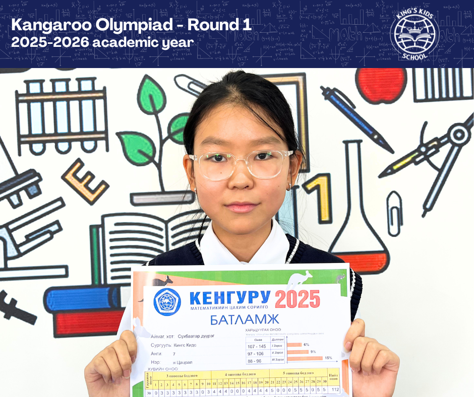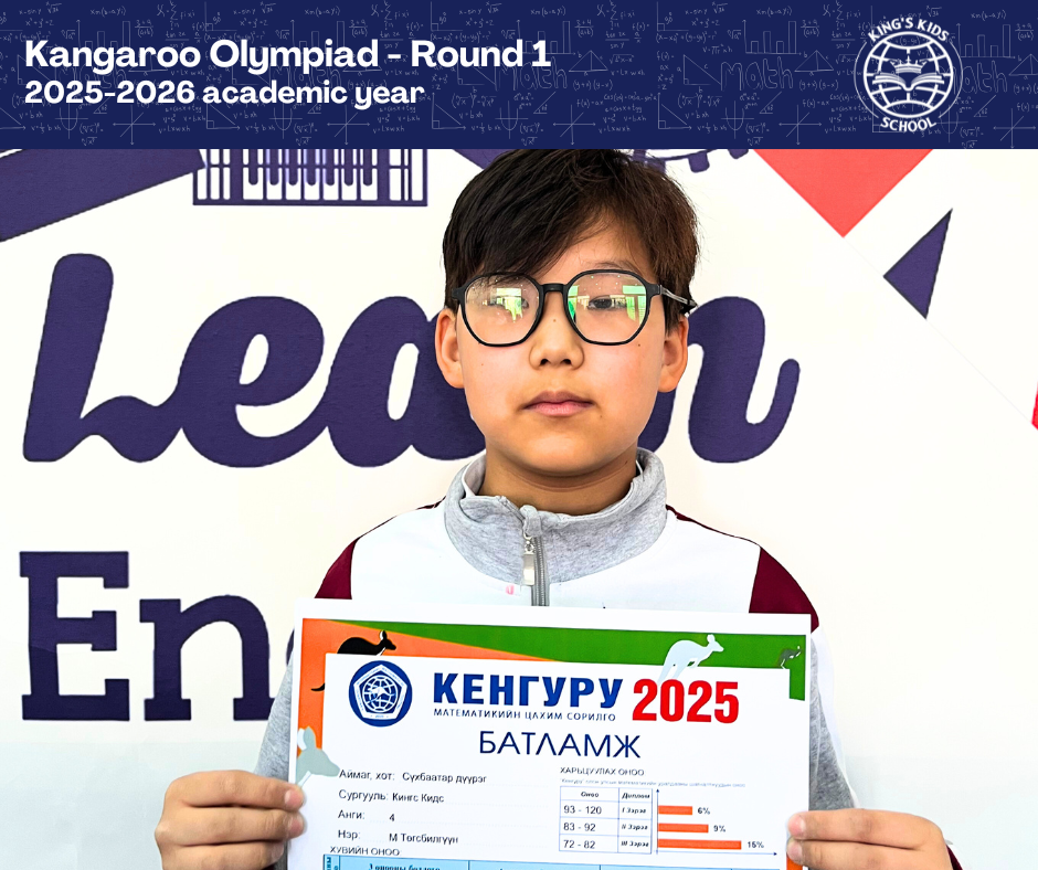 “Кенгуру–2025” олон улсын математикийн уралдаанд амжилттай оролцож 1,2,3-р зэрэг авсан сурагчдадаа цаашдын сурлага болон тэмцээн уралдаанд нь өндөр амжилт хүсье.We extend our best wishes to the students who successfully participated in the “Kangaroo–2025” International Mathematics Competition and achieved 1st, 2nd, and 3rd place. We wish them continued success in their studies and future competitions.