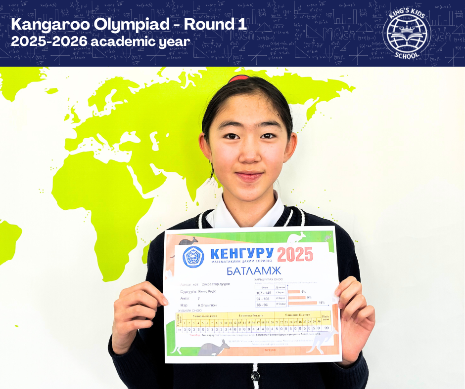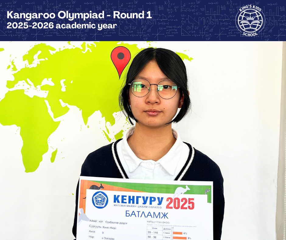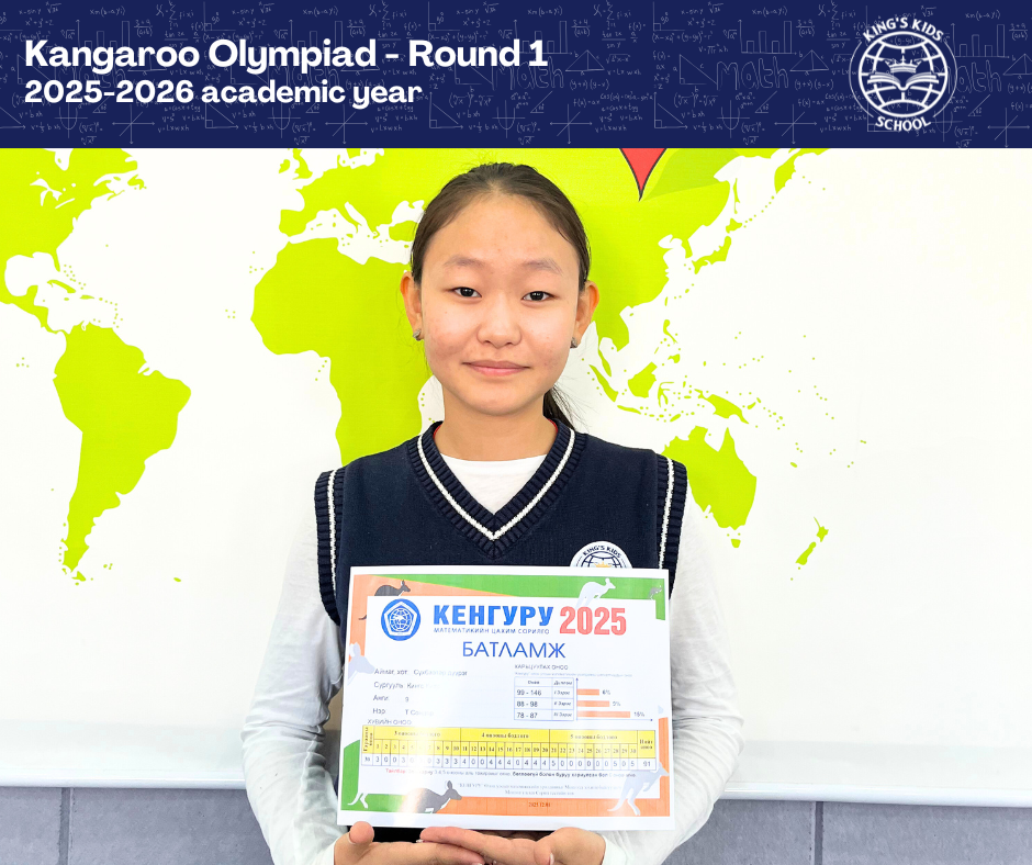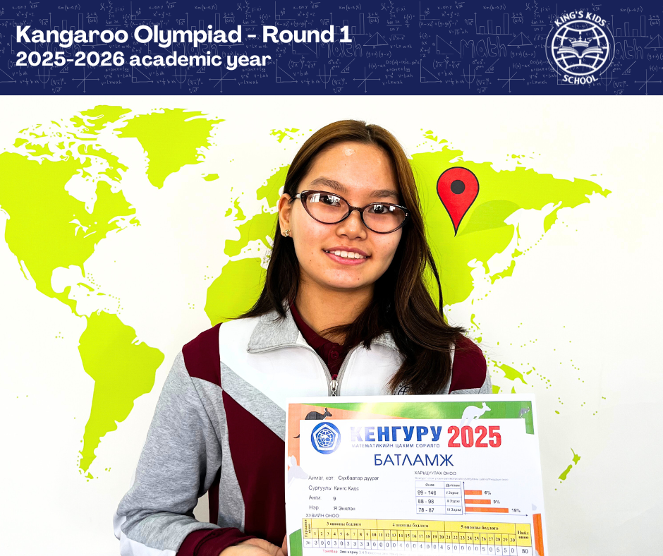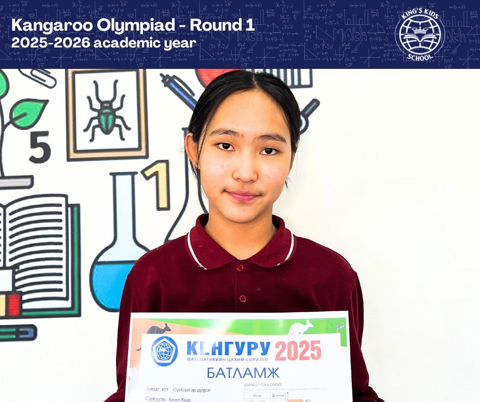 “Кенгуру–2025” олон улсын математикийн уралдаанд амжилттай оролцож 1,2,3-р зэрэг авсан сурагчдадаа цаашдын сурлага болон тэмцээн уралдаанд нь өндөр амжилт хүсье.We extend our best wishes to the students who successfully participated in the “Kangaroo–2025” International Mathematics Competition and achieved 1st, 2nd, and 3rd place. We wish them continued success in their studies and future competitions.